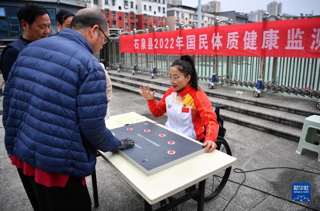 11月4日,在石泉縣開(kāi)展的國民體質(zhì)健康監測活動(dòng)中,夏江波為群眾測量記錄反應時(shí)間指標。