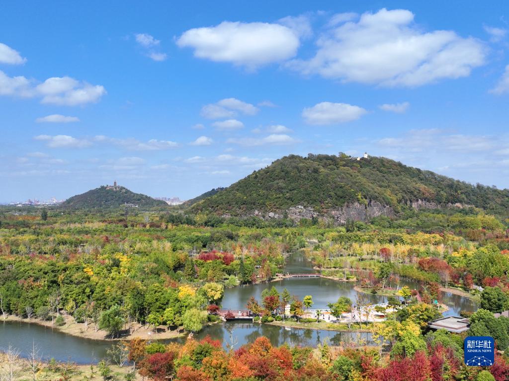 這是10月29日在江蘇省南通狼山國家森林公園拍攝的秋景(無(wú)人機照片)。 新華社發(fā)(許叢軍 攝)