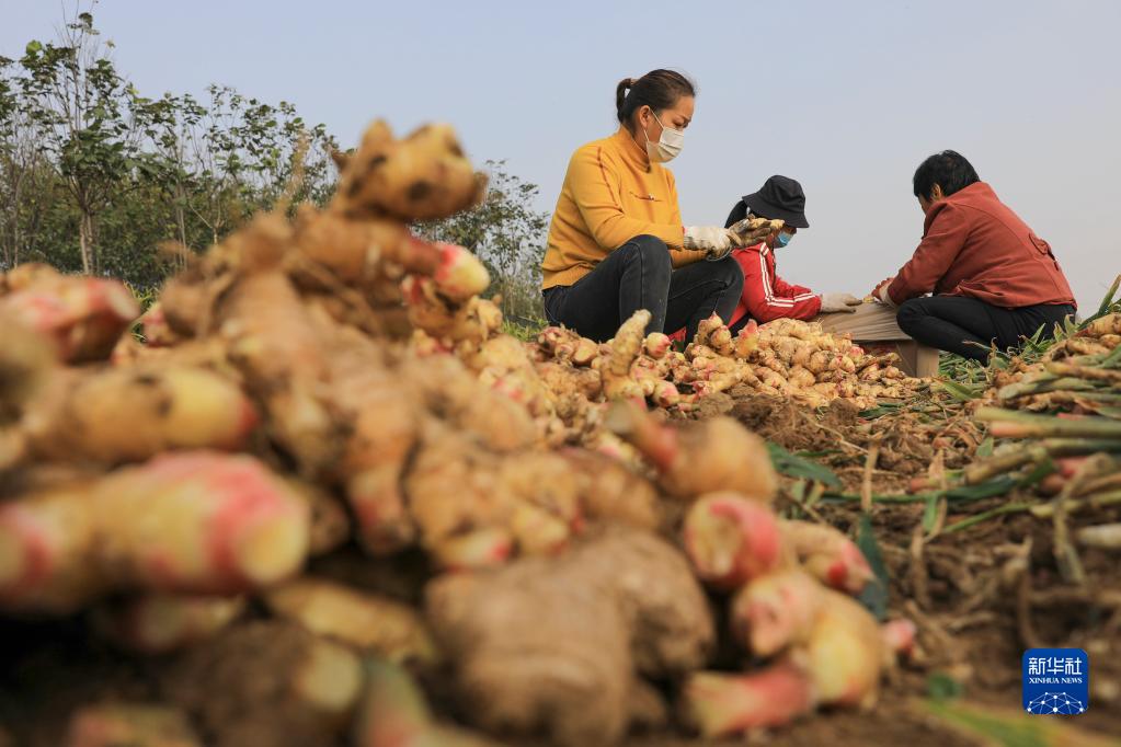 11月5日,河南省寶豐縣商酒務(wù)鎮柳林村村民在田間收獲生姜。