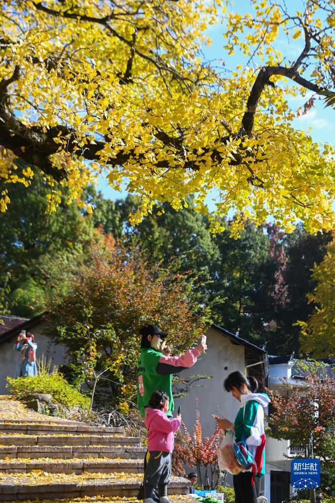 11月5日,游客在指南村的古銀杏樹(shù)下觀(guān)賞秋色。