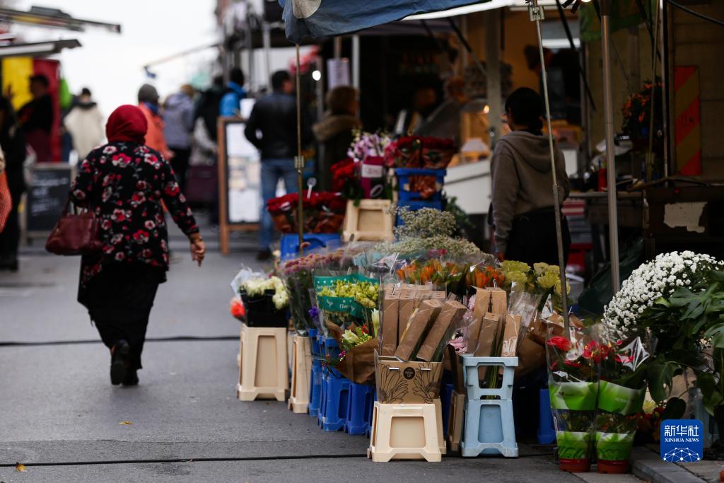11月4日,在比利時(shí)布魯塞爾一市場(chǎng),行人經(jīng)過(guò)售賣(mài)鮮花的攤位。