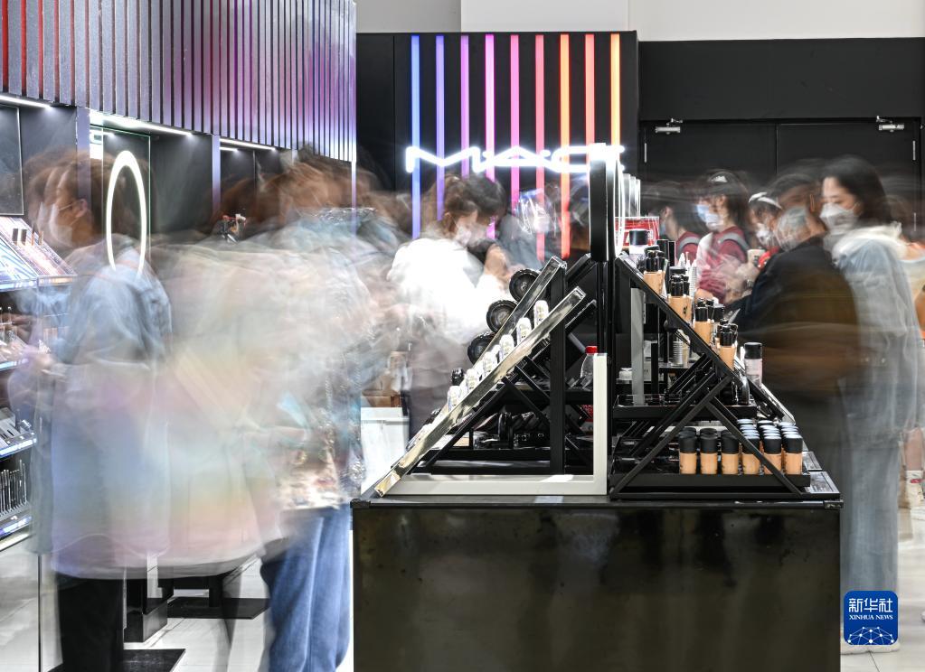 消費者在中免集團??谌赵聫V場(chǎng)免稅店購物(1月14日攝)。