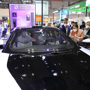 11月5日,參觀(guān)者在第五屆進(jìn)博會(huì )技術(shù)裝備展區的電動(dòng)車(chē)前交流。
