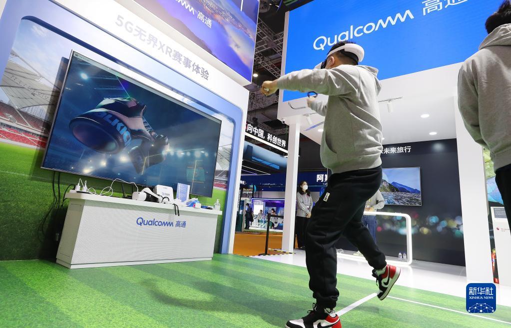 11月5日,參觀(guān)者在第五屆進(jìn)博會(huì )技術(shù)裝備展區內體驗一款體育游戲。