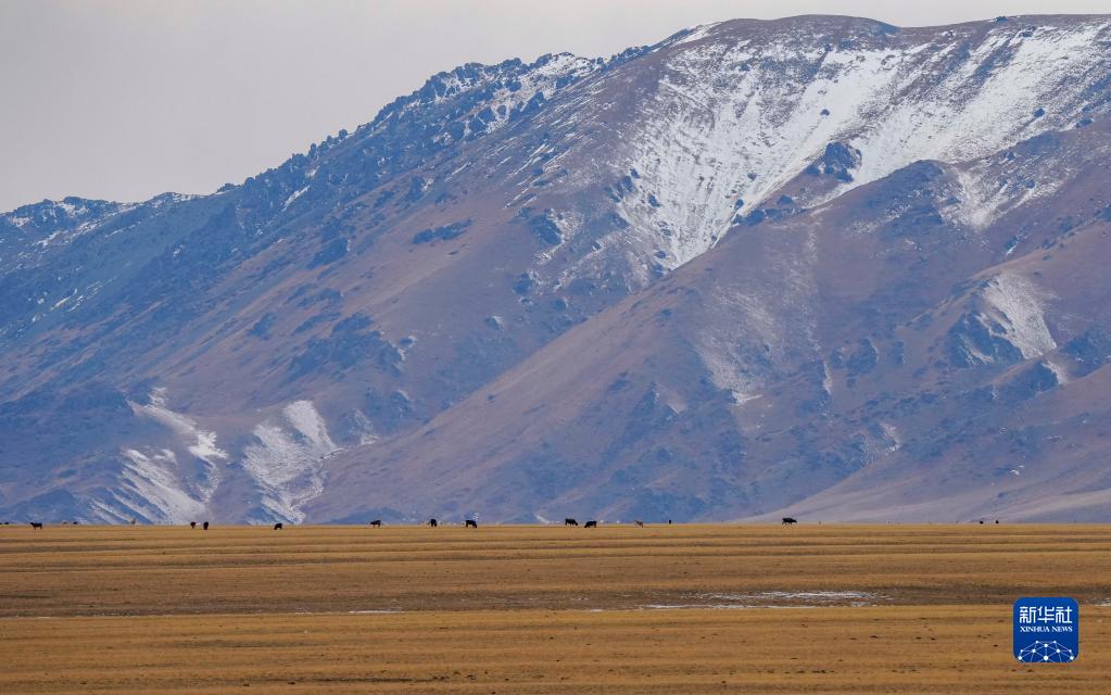 牲畜在新疆裕民縣巴爾魯克山冬季牧場(chǎng)上覓食(11月4日攝)。