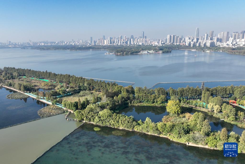 武漢華僑城生態(tài)濕地公園(10月19日攝)。 新華社記者 程敏 攝