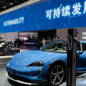 11月6日在第五屆進(jìn)博會(huì )汽車(chē)展區拍攝的保時(shí)捷新能源汽車(chē)。