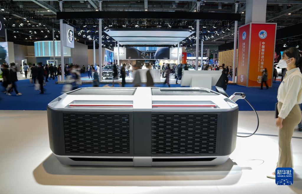 11月6日在第五屆進(jìn)博會(huì )汽車(chē)展區拍攝的韓國現代汽車(chē)公司氫燃料電池系統發(fā)電機。