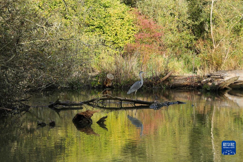 在荷蘭多德雷赫特,一只蒼鷺站在比斯博斯國家公園的樹(shù)枝上(11月2日攝)。