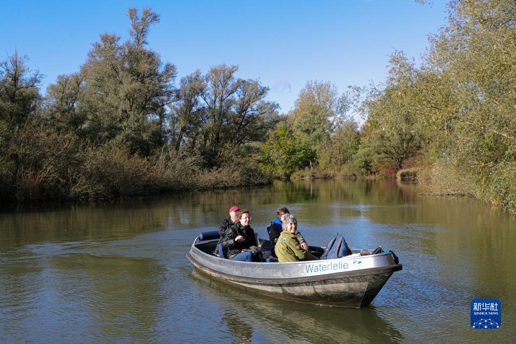 在荷蘭多德雷赫特,人們乘船游覽比斯博斯國家公園風(fēng)光(11月2日攝)。