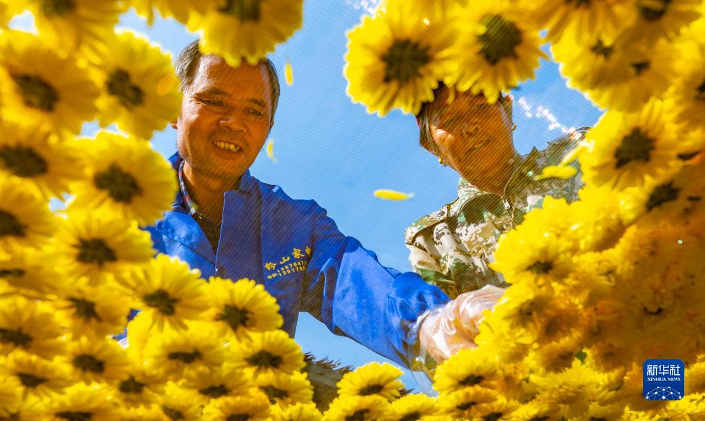 11月7日,江西省新余市仙女湖區易家橋村農戶(hù)在加工金絲皇菊。
