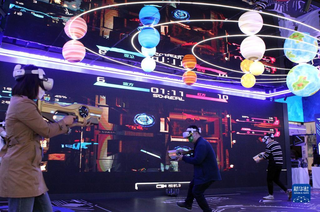 11月7日,在第五屆進(jìn)博會(huì )技術(shù)裝備展區的人工智能專(zhuān)區,體驗者借助VR設備進(jìn)行電競互動(dòng)游戲。