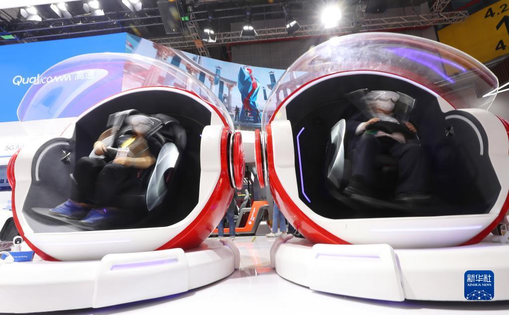 11月5日,參觀(guān)者在第五屆進(jìn)博會(huì )技術(shù)裝備展區體驗一款VR游戲座椅。