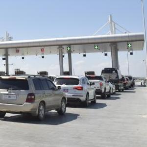 11月7日,車(chē)輛在柬埔寨首都金邊的金港高速公路入口處排隊。