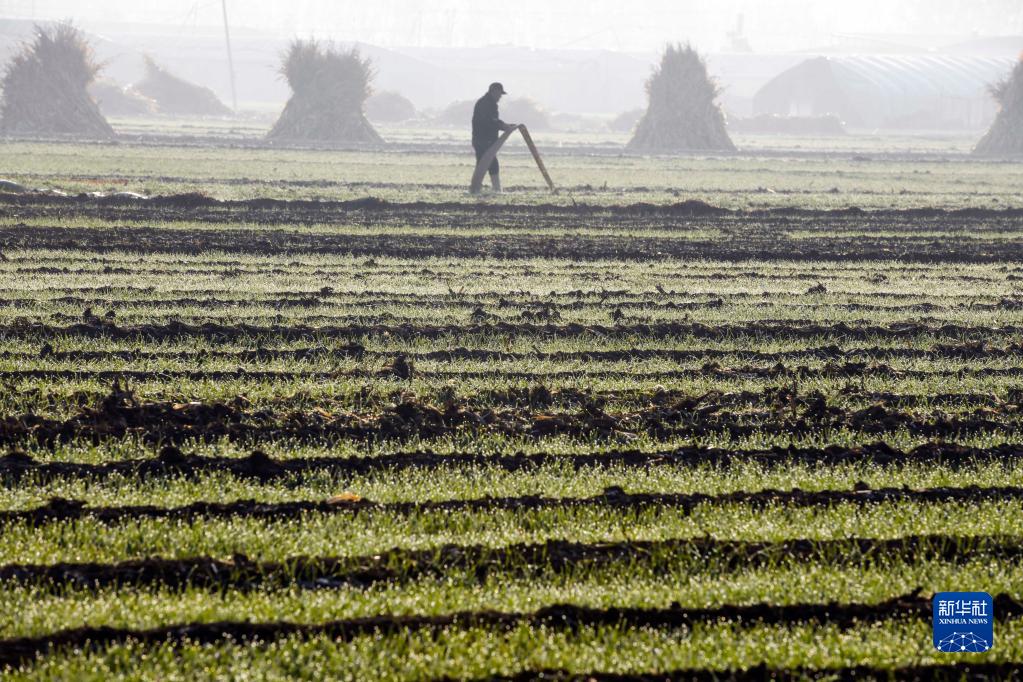 11月8日,河北省唐山市高新技術(shù)開(kāi)發(fā)區老莊子鎮農民在麥田勞作。