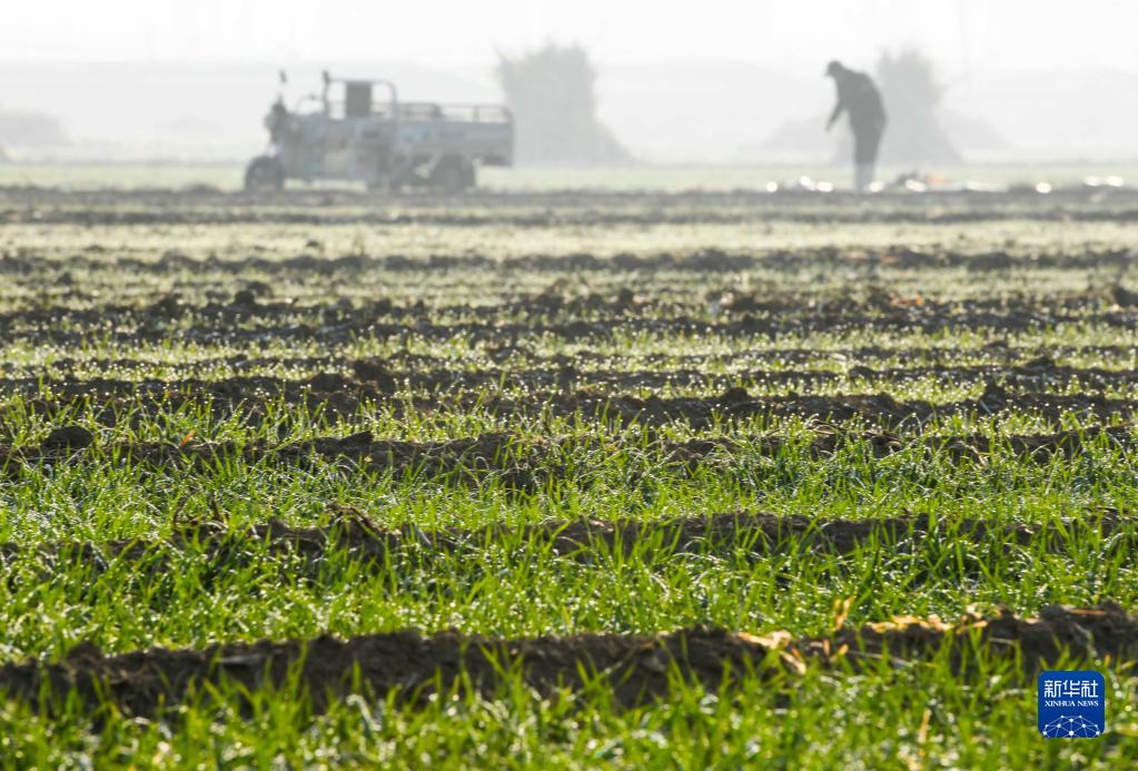 11月8日,河北省唐山市高新技術(shù)開(kāi)發(fā)區老莊子鎮農民在麥田勞作。