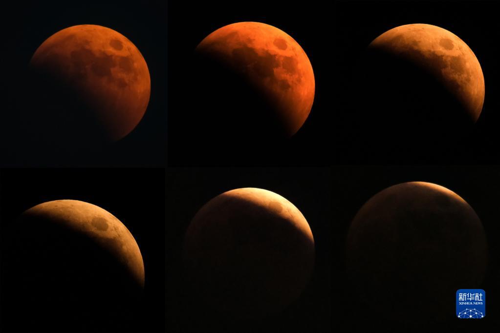 這是11月8日在北京拍攝的月食(拼版照片)。
