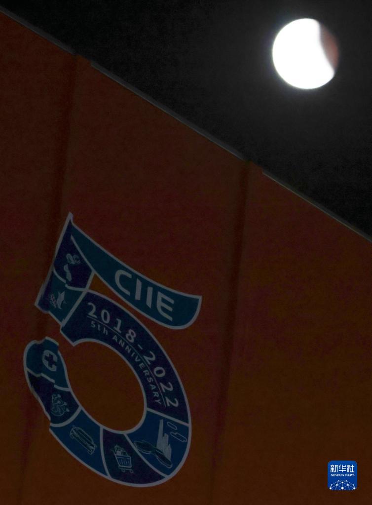 這是11月8日在國家會(huì )展中心(上海)拍攝的月食。