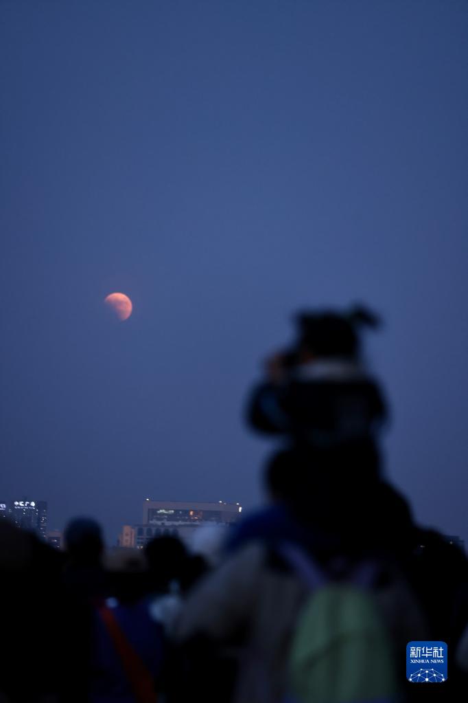 11月8日,人們在北京景山公園觀(guān)看月全食。