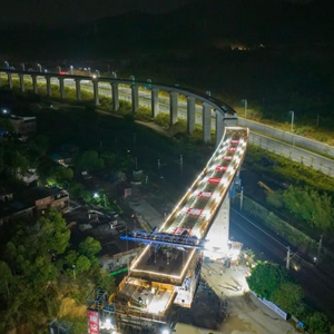 清遠磁浮旅游專(zhuān)線(xiàn)長(cháng)隆特大橋跨京廣鐵路連續梁轉體成功