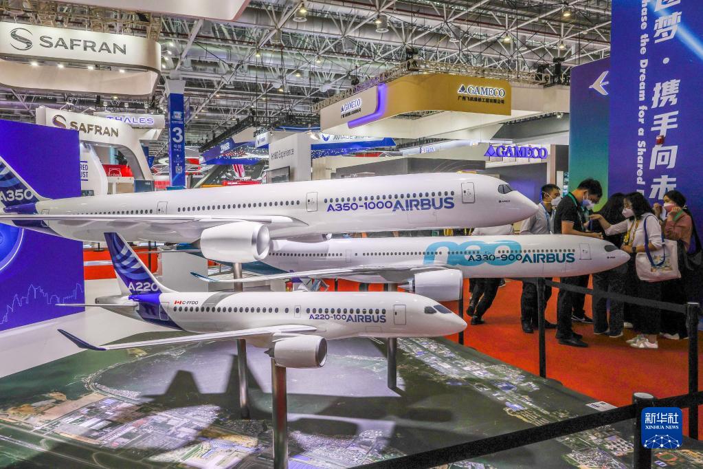 11月8日,觀(guān)眾在空中客車(chē)展區參觀(guān)。