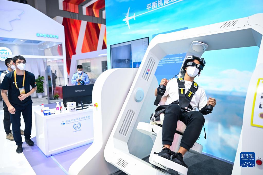這是11月8日拍攝的航展上的平衡機能選拔評估系統。