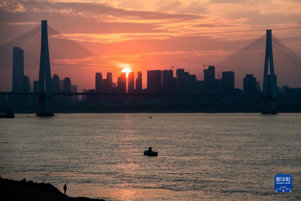這是11月8日在武漢市青山江灘拍攝的江景。