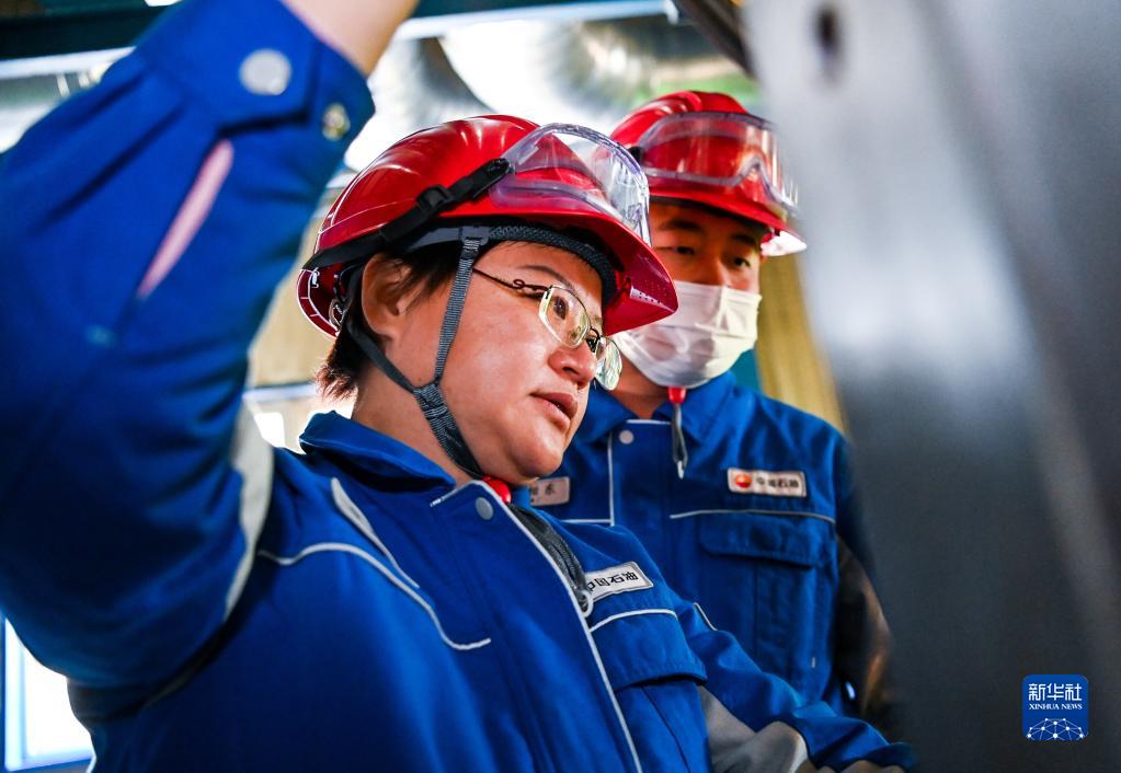 11月4日,在中國石油吉林石化公司煉油廠(chǎng),李艷(左)為同事示范裝置操縱。