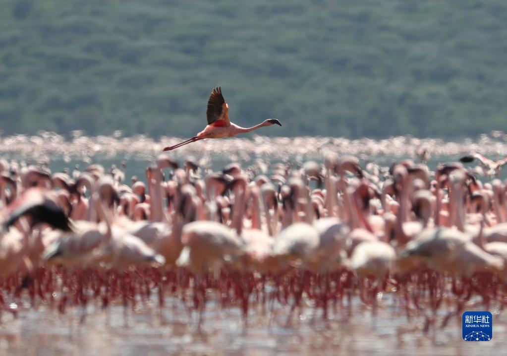 這是11月6日在肯尼亞博戈里亞湖拍攝的火烈鳥(niǎo)。