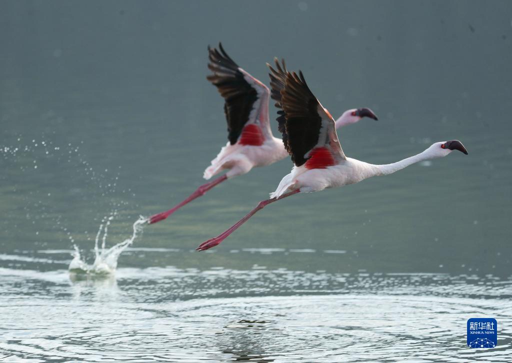 這是11月6日在肯尼亞博戈里亞湖拍攝的火烈鳥(niǎo)。