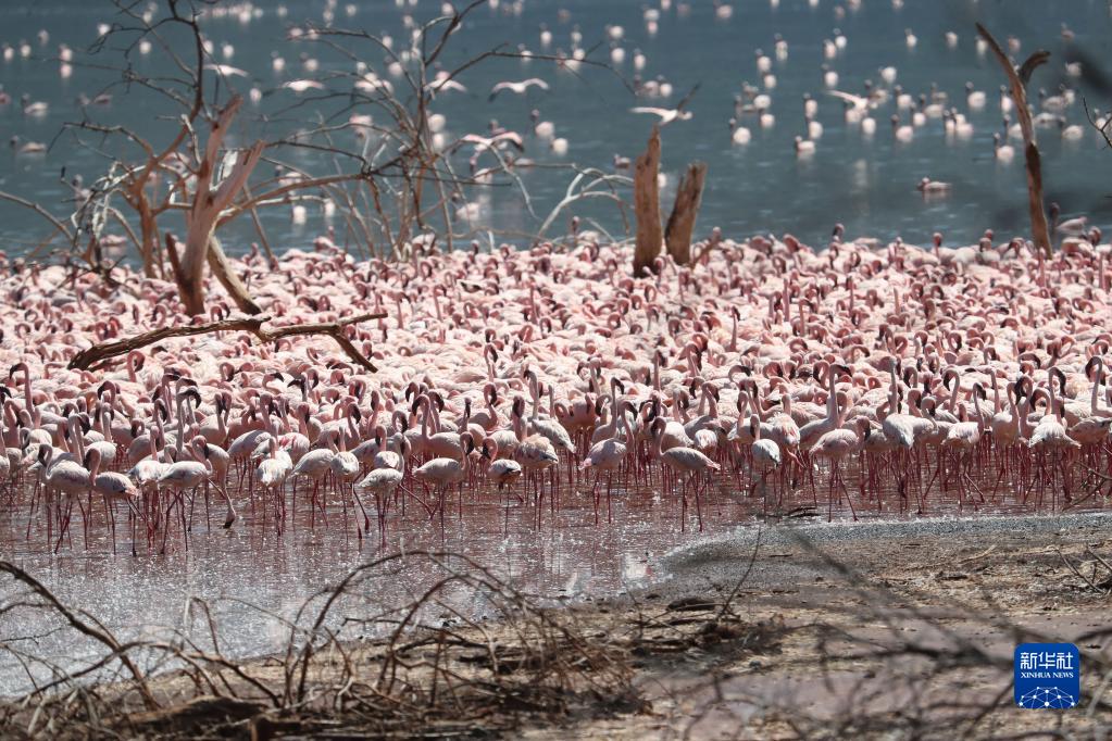 這是11月6日在肯尼亞博戈里亞湖拍攝的火烈鳥(niǎo)。