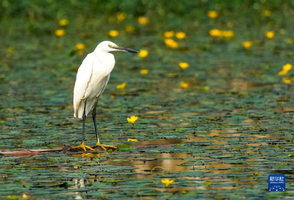 11月7日,在重慶市梁平區雙桂湖國家濕地公園,一只白鷺在湖畔的濕地休憩。