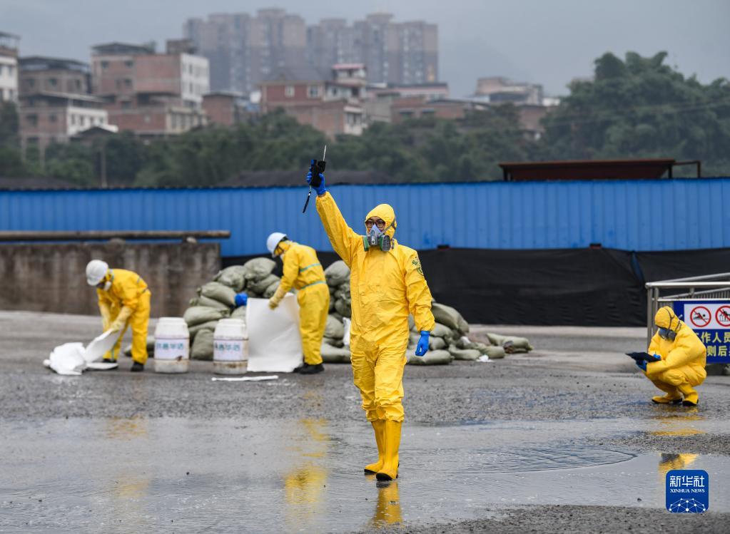 11月9日,在四川省宜賓市敘州區,演練人員進(jìn)行環(huán)境監測工作。