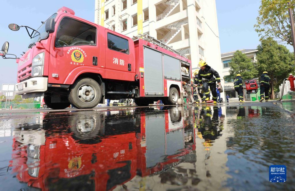 11月9日,在湖南省張家界市,消防員在進(jìn)行技能競賽。