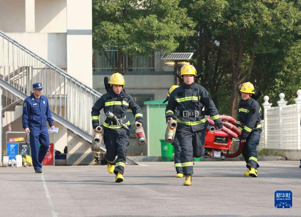 11月9日,在湖南省張家界市,消防員在進(jìn)行技能競賽。