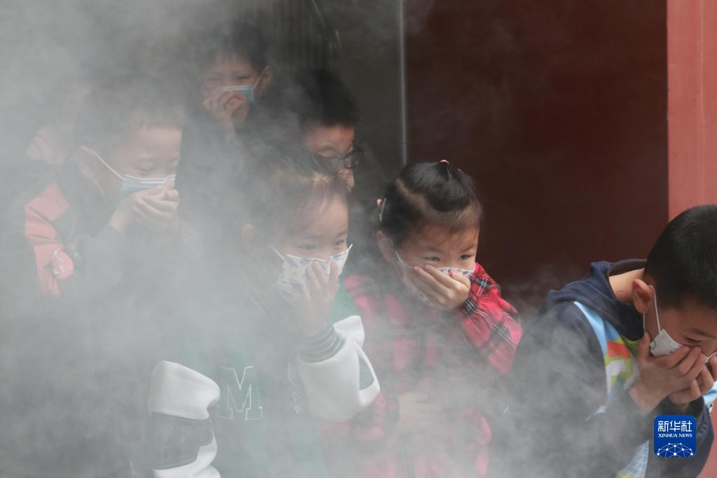 11月9日,在江蘇省無(wú)錫市揚名中心小學(xué),學(xué)生在消防應急疏散演練中撤離教學(xué)樓。