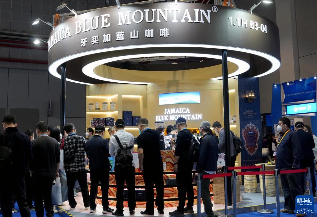11月7日,觀(guān)眾在第五屆進(jìn)博會(huì )牙買(mǎi)加藍山咖啡展臺參觀(guān)。