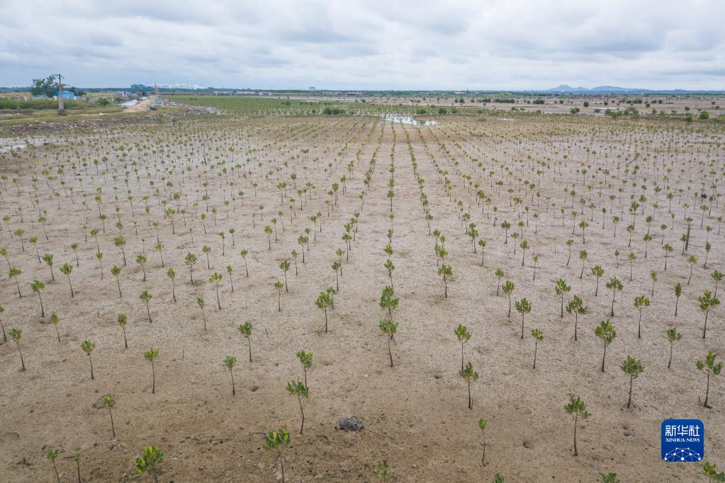 11月8日在海南省儋州市拍攝的新英鹽場(chǎng)紅樹(shù)林恢復造林工程(無(wú)人機照片)。