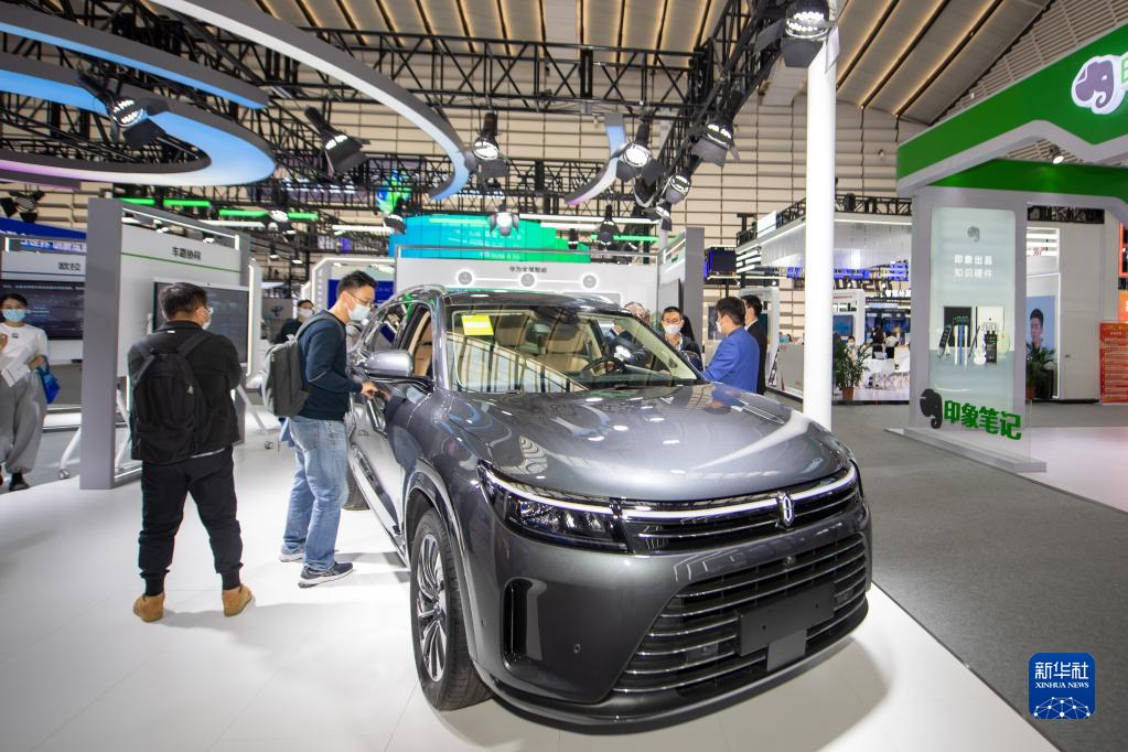 11月10日,觀(guān)眾參觀(guān)華為公司展臺的汽車(chē)。