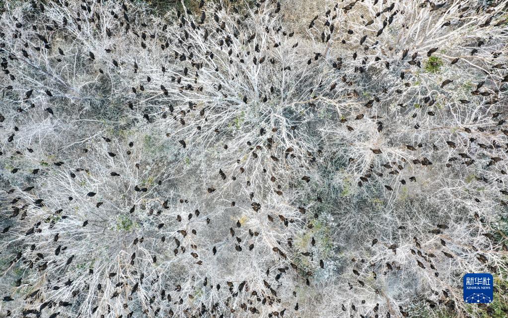 鹽城濕地珍禽國家級自然保護區里的鸕鶿(11月7日攝,無(wú)人機照片)。