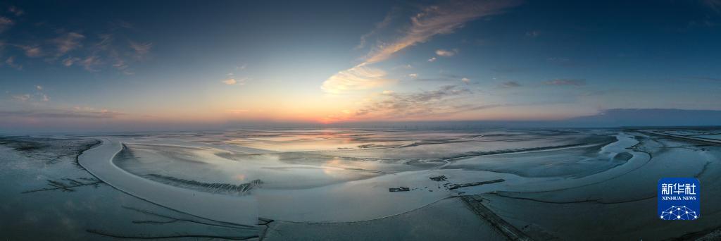 鹽城東臺條子泥濕地日出景象(11月9日攝,無(wú)人機照片)。
