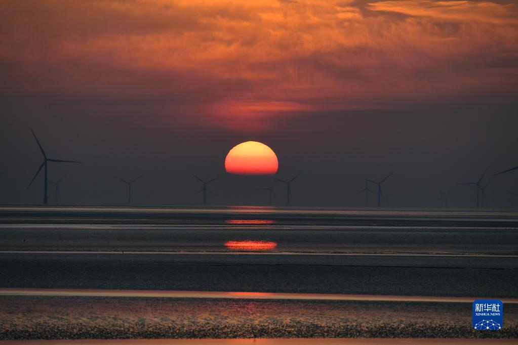 鹽城東臺條子泥濕地日出景色(11月9日攝)。