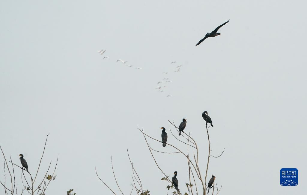 鹽城濕地珍禽國家級自然保護區里的鸕鶿(11月7日攝)。