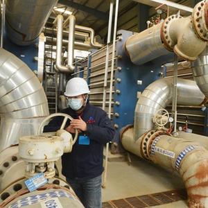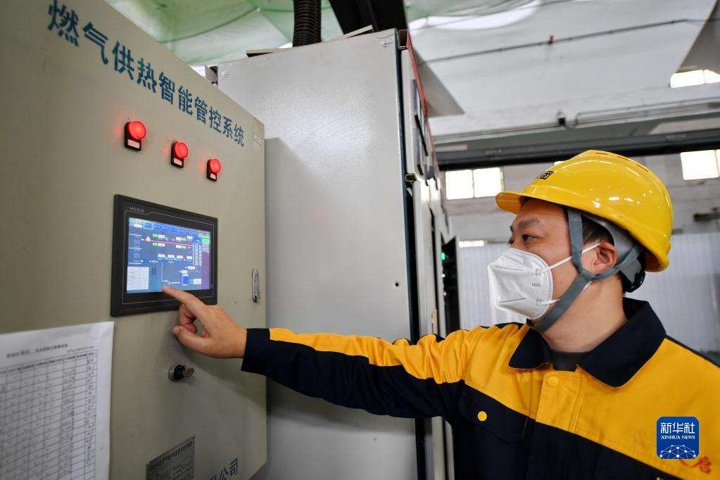 11月10日,石家莊市旭城花園供熱站工作人員在查看供暖設備運行情況。