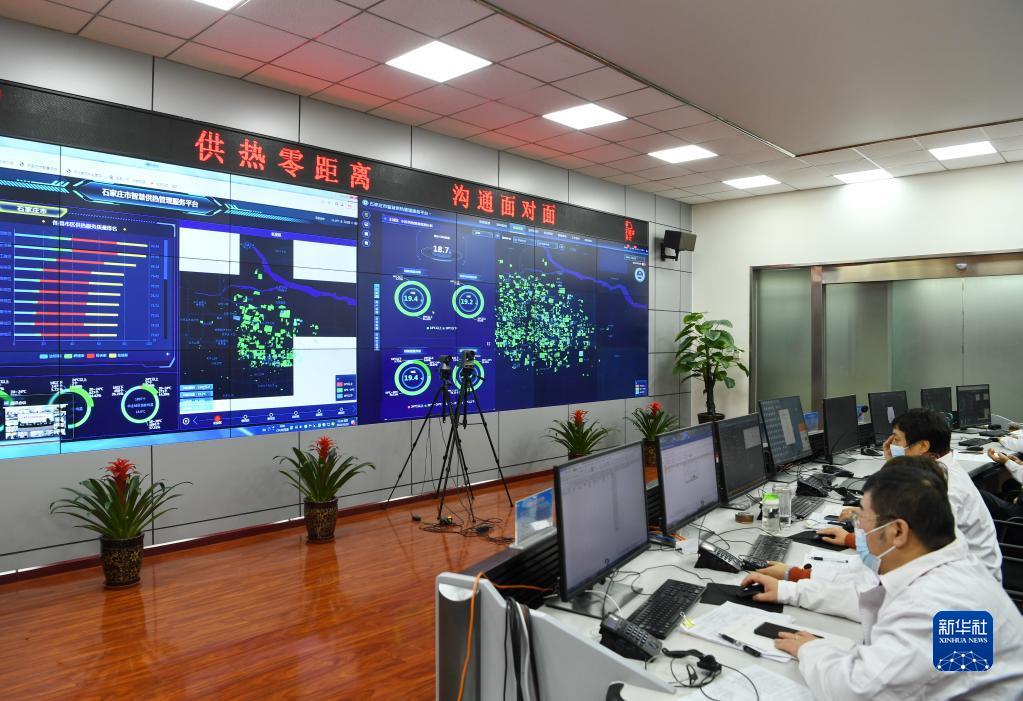11月10日,石家莊市供熱調度指揮中心的工作人員在監測供熱系統運行情況。