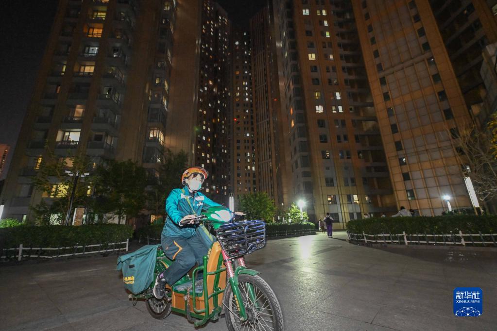 11月7日,劉婷騎電動(dòng)車(chē)在天津市和平區金德園小區內投遞快件。