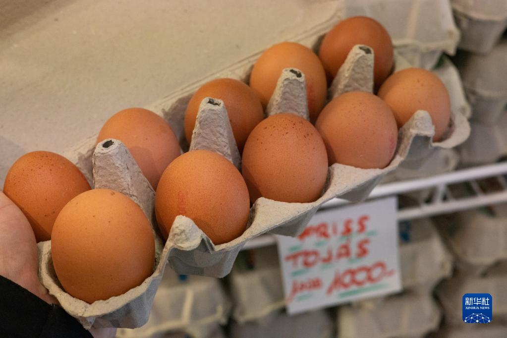 這是11月10日在匈牙利布達佩斯一處農貿市場(chǎng)拍攝的雞蛋。