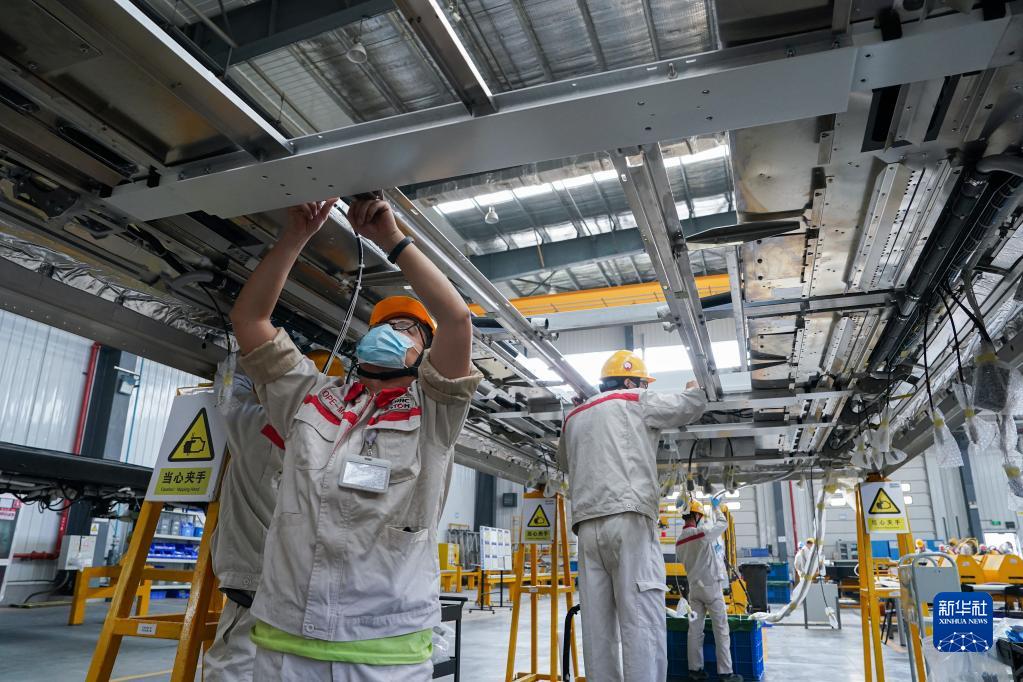 11月9日,中車(chē)浦鎮阿爾斯通運輸系統有限公司工人在軌道交通車(chē)輛生產(chǎn)線(xiàn)上工作。