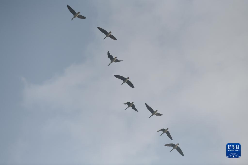 11月11日,一群候鳥(niǎo)在安徽升金湖國家級自然保護區上空飛翔。