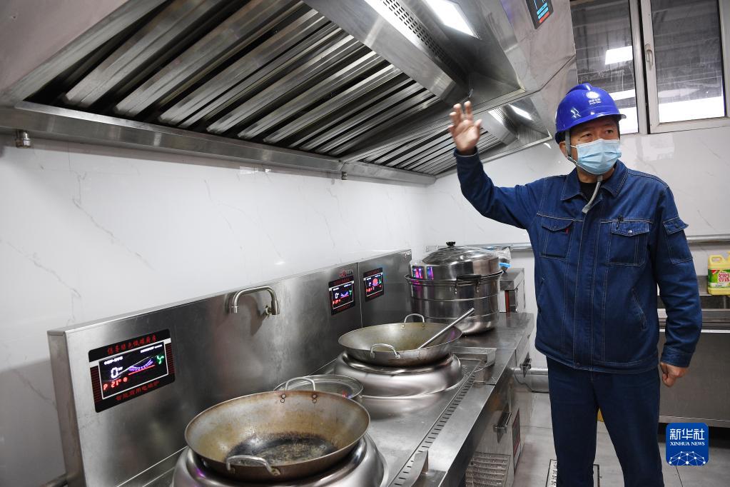 11月11日,國網(wǎng)寧夏電力石嘴山供電公司長(cháng)勝供電所工作人員在介紹全電廚房工作原理。